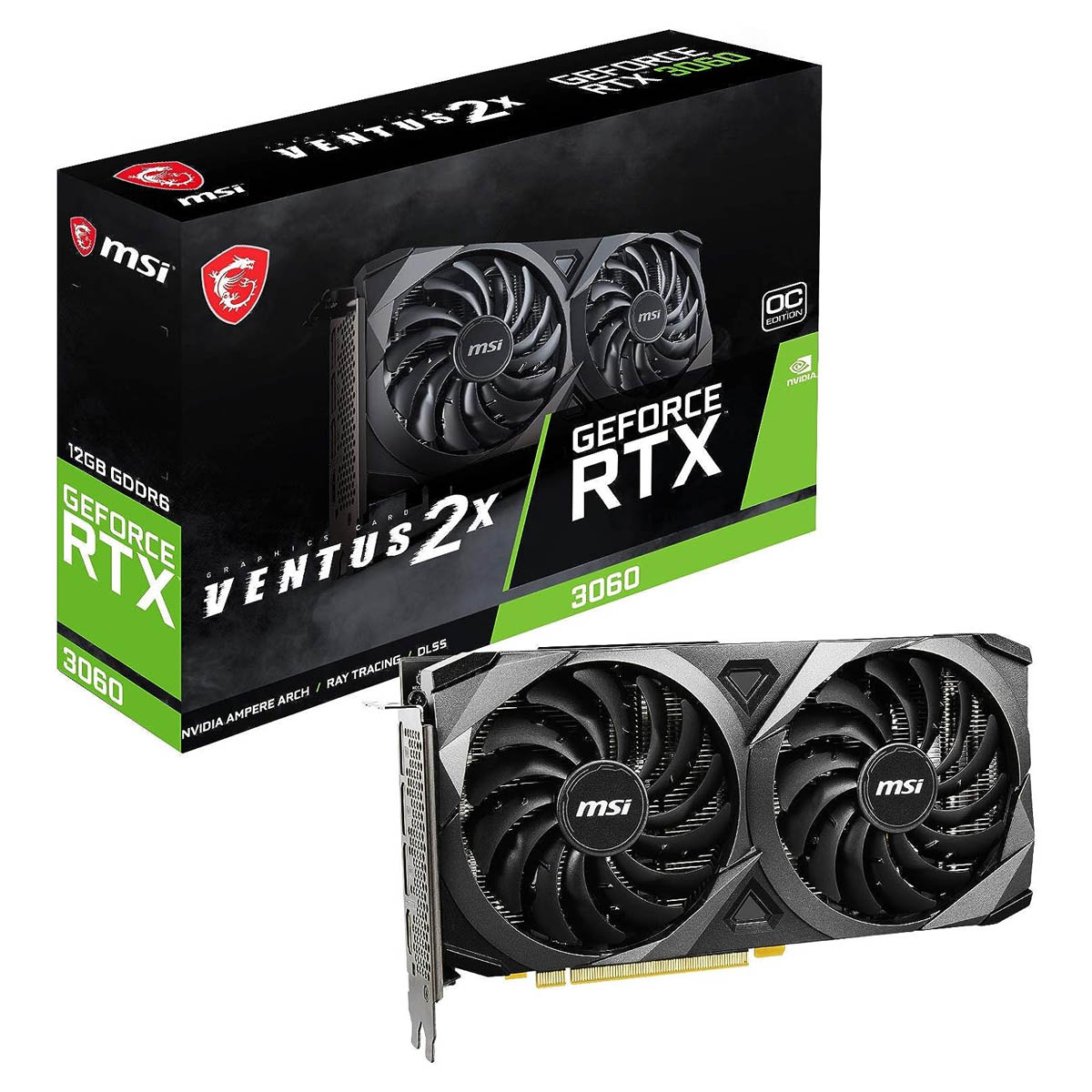 The MSI GeForce RTX 3060 features 12GB of GDDR6 memory with a 192-bit interface and a memory speed of 15Gbps. Built on NVIDIA’s Ampere architecture, it includes 3584 CUDA cores, 2nd-gen ray tracing cores, and 3rd-gen Tensor cores. The card supports PCIe 4.0, DirectX 12 Ultimate, OpenGL 4.6, and Vulkan APIs. Display outputs include HDMI 2.1 and DisplayPort 1.4a, with support for up to four monitors. Compatible with NVIDIA DLSS, Reflex, and Broadcast technologies. Ideal for systems requiring a mid-range GPU with VR and Resizable BAR support.