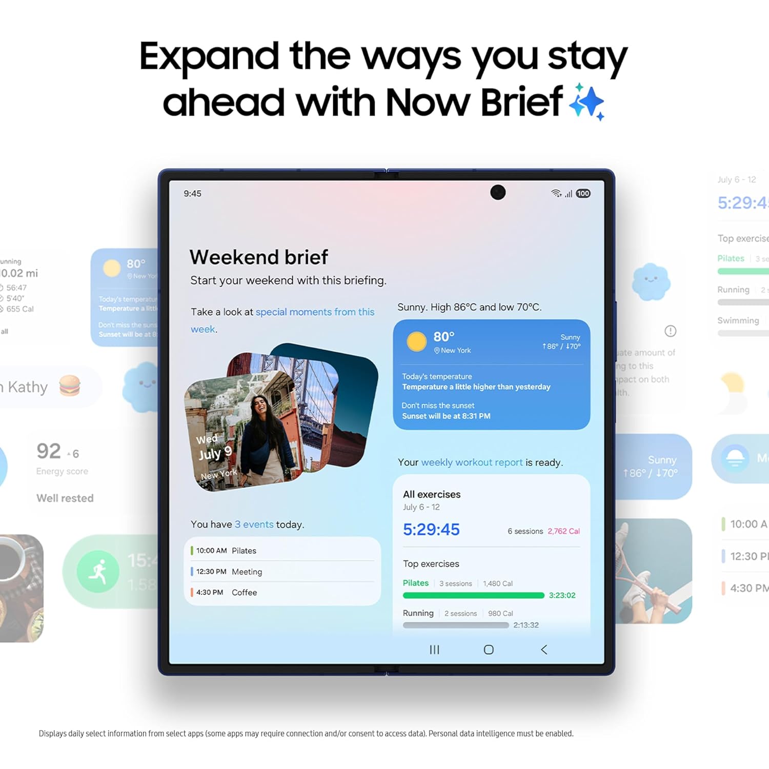 Pair with the Galaxy Watch8 Classic and visualize health metrics in greater detail on the Fold7’s large display. From fitness goals to sleep tracking, your wellness insights are clearer than ever.